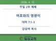 일심나눔터 공지사항 경조부 게시판 행사갤러리 새가족소개 섬김부서 유아부 유치부 유년부 초등부 학생부 청년부 남전도회 여전도회 예배설교 목사님설교 초청강사설교 특별영상 찬양 교회소개 교회비전 예배안내 섬기는이들 교회발자취 오시는길